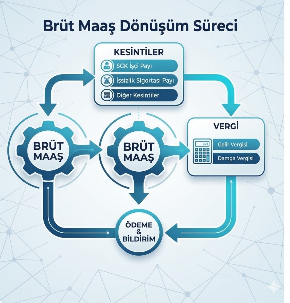 Brüt-Net Hesaplamaları: SGK işçi ve işveren payları, işsizlik sigortası ve gelir vergisi kalemlerinin hatasız hesaplanması.